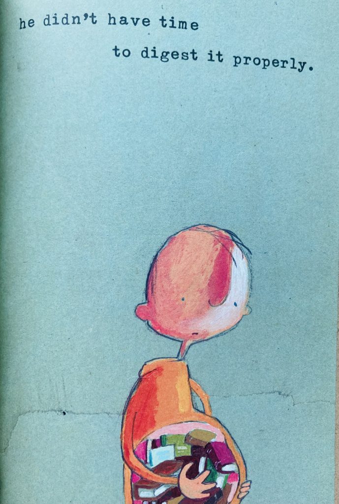 Knowledge is slow. And we’re losing our ability to be slow. This book highlights for children how the rush to consume information (and misinformation) leads to confusion. We need “time to digest it properly.” Time to take the information in and turn it from something we’ve collected into something we understand.